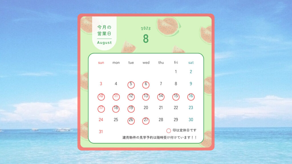 TOP > NEWS > 2025/8 いえとち本舗瀬戸店 営業日と夏季休暇のお知らせ