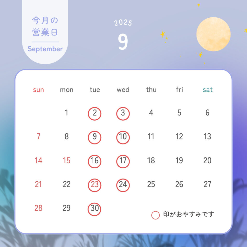 TOP > NEWS > 2025/9 いえとち本舗瀬戸店 営業日のお知らせ